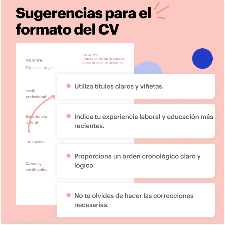 Obviamente, los reclutadores y equipos de recursos humanos están interesados en encontrar al candidato más adecuado. Por eso revisarán detenidamente tu currículum para ver si estás aplicando de manera adecuada al puesto específico que se ofrece; lo que significa que has invertido una porción significativa de tu tiempo para hacer la solicitud. Por lo tanto, es esencial adaptar tu CV para cada solicitud de empleo en México y destacar la experiencia más relevante y reciente; por ejemplo, enfocándote en tus calificaciones, habilidades y experiencia pertinentes al trabajo específico en el campo de la contabilidad.