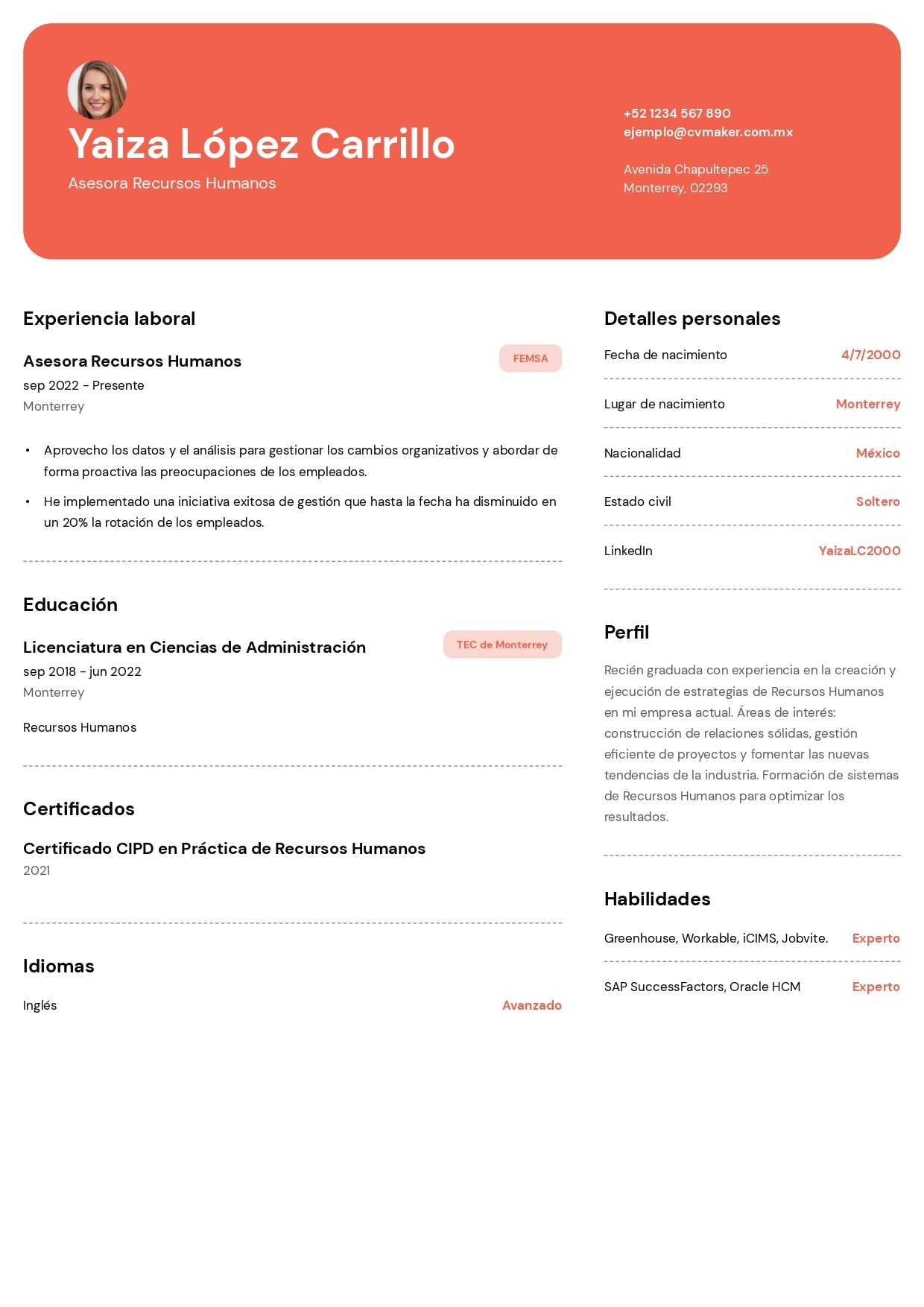 Las personas que quieran trabajar en estos equipos deben cuidar al máximo todos los detalles a la hora de entregar sus currículos, como por ejemplo el cv de gerente de recursos humanos en México. Por eso vamos a explicarte en esta guía paso a paso cómo debe ser este documento tan importante para encontrar trabajo, con ejemplos de CV de recursos humanos.